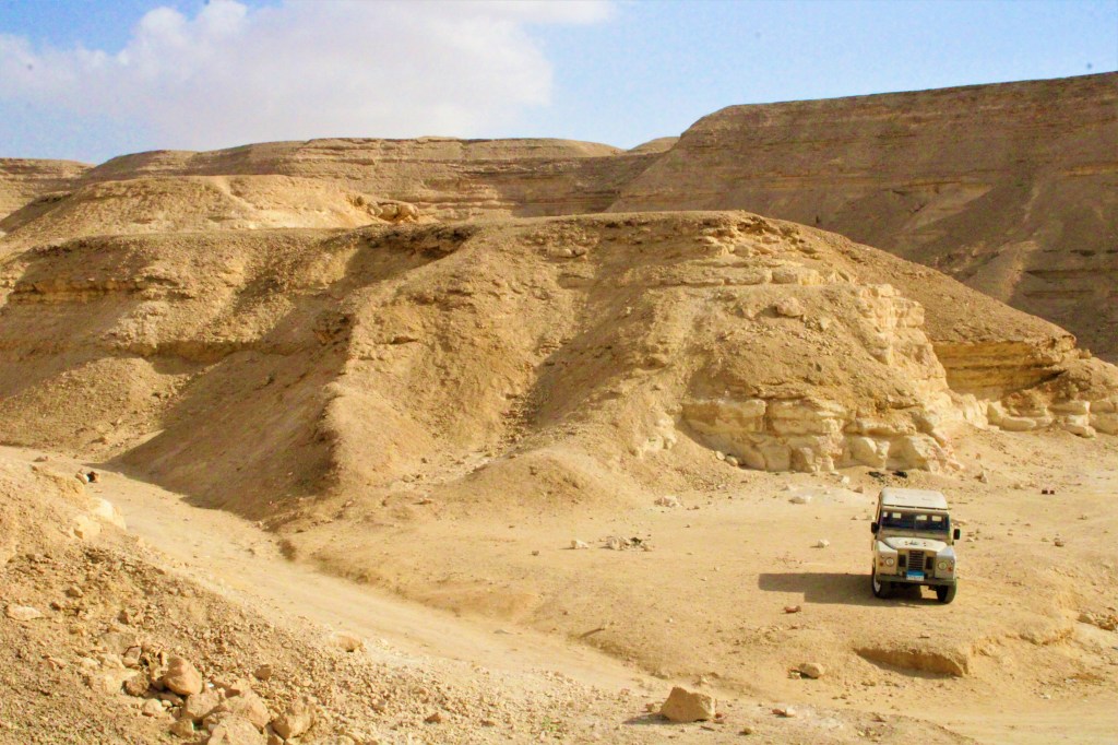 I have to say I was impressed. The 2.5 petrol shifts the little wagon along as a healthy rate of knots and Ihab’s done a great job of restoring and rebuilding Dusty sympathetically but with obvious intent to keep her in daily use. She growled happily through the swirling madness that is Cairo traffic and carried us to where the hills begin to ramp up to the east of the massive ancient city, and then into the long winding desert valley that is Wadi Degla.
