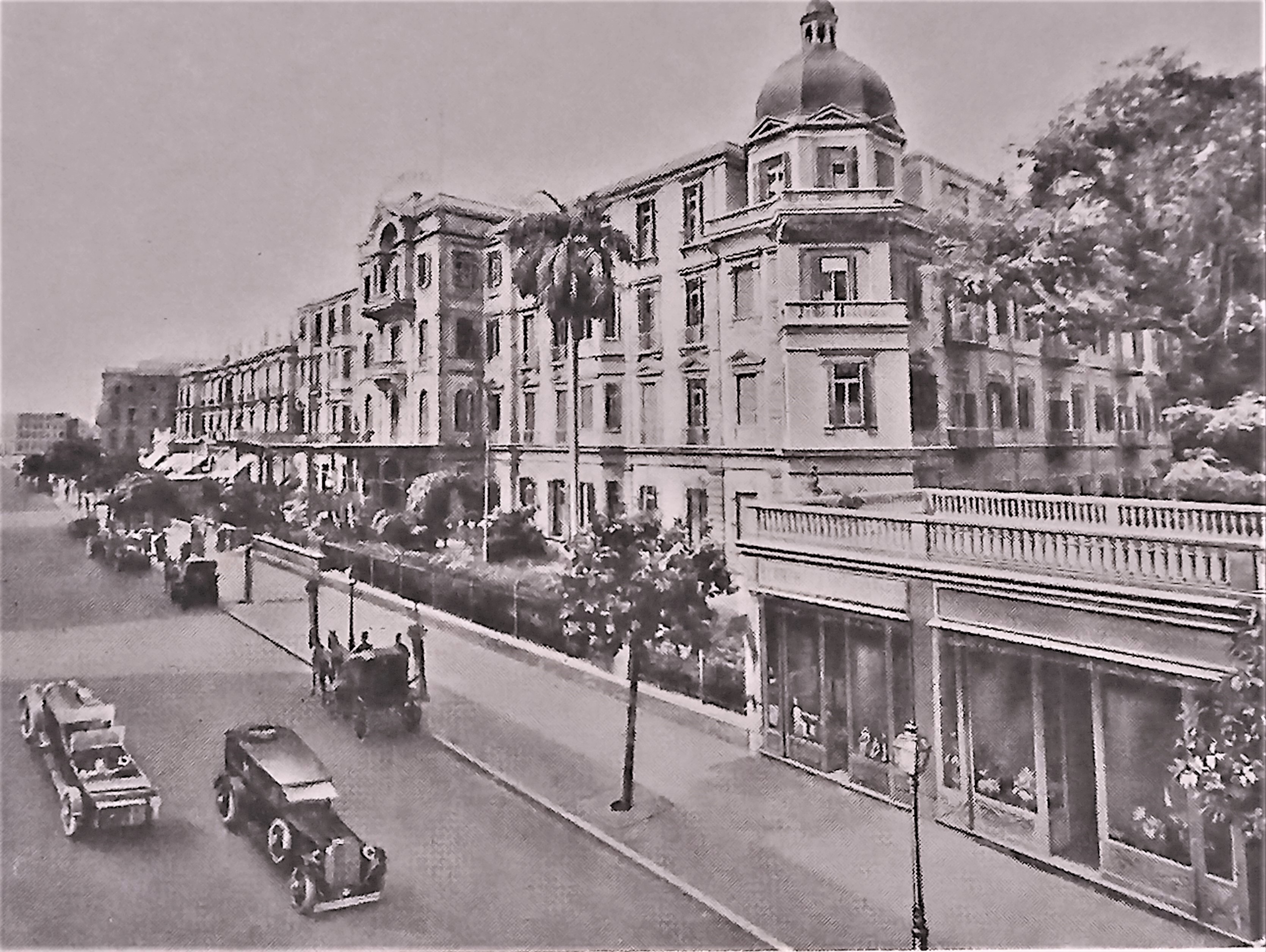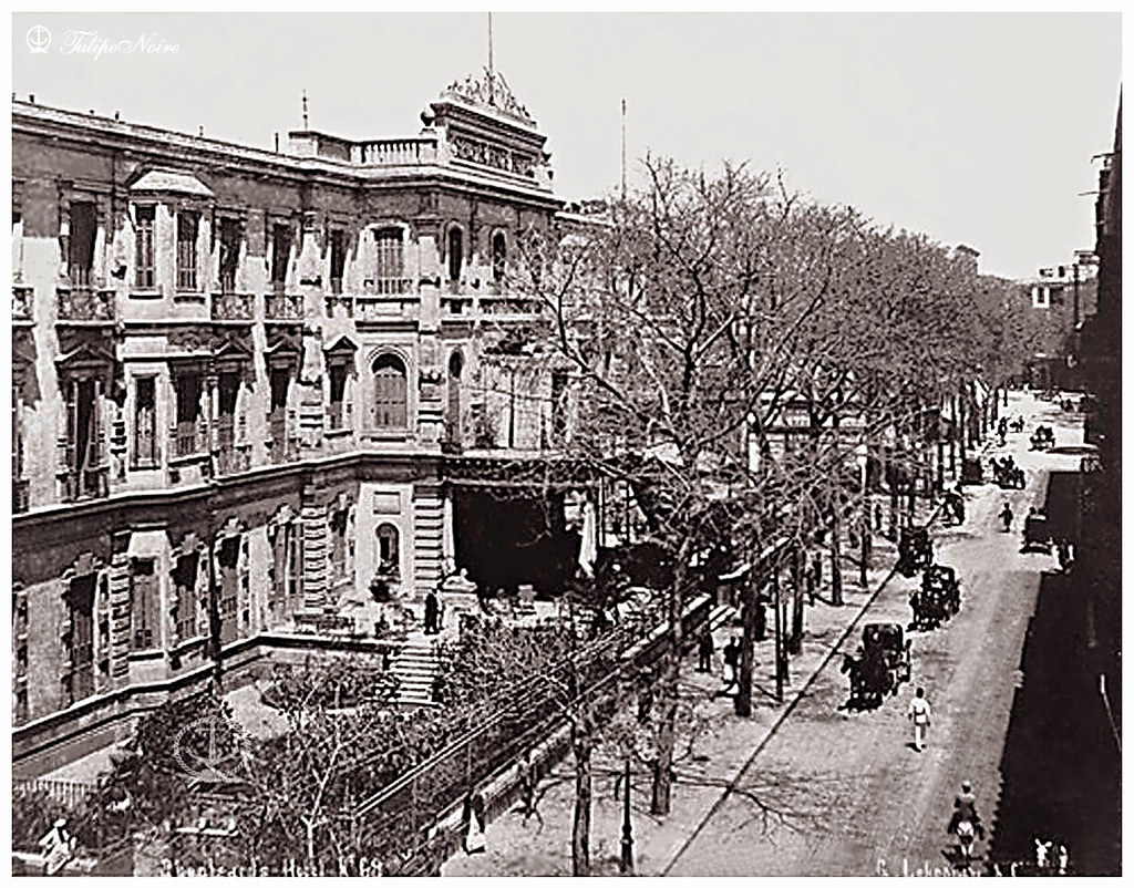 Situated in the capital of an Egypt administered by Britain since 1882, Shepheard’s stood overlooking the beautiful Ezbekiyeh Gardens on Sharia Kamal, near the Opera House. It was one of the most celebrated hotels in the world until destruction by fire in 1952. Established in 1841 as the “Hotel des Anglais” by Samuel Shepheard, it went through changes of ownership and extensions, until by of 1940 it was the place to be seen, and the place to stay, for the well-heeled and well-connected of both Cairo and the British Empire. General Gordon set out from Shepheard’s to Khartoum. Stanley left from there to head south to find Livingstone, Sir Richard Burton returned to Shepheard’s upon completion of his journey to Mecca disguised as Haji Abdullah. Roosevelt. T E Lawrence, Churchill, Kitchener, Florence Nightingale, Mark Twain and Rudyard Kipling all knew Shepheard’s well. “See you at Shepheard’s!” was the cry of farewell between monied children of Empire across the globe.