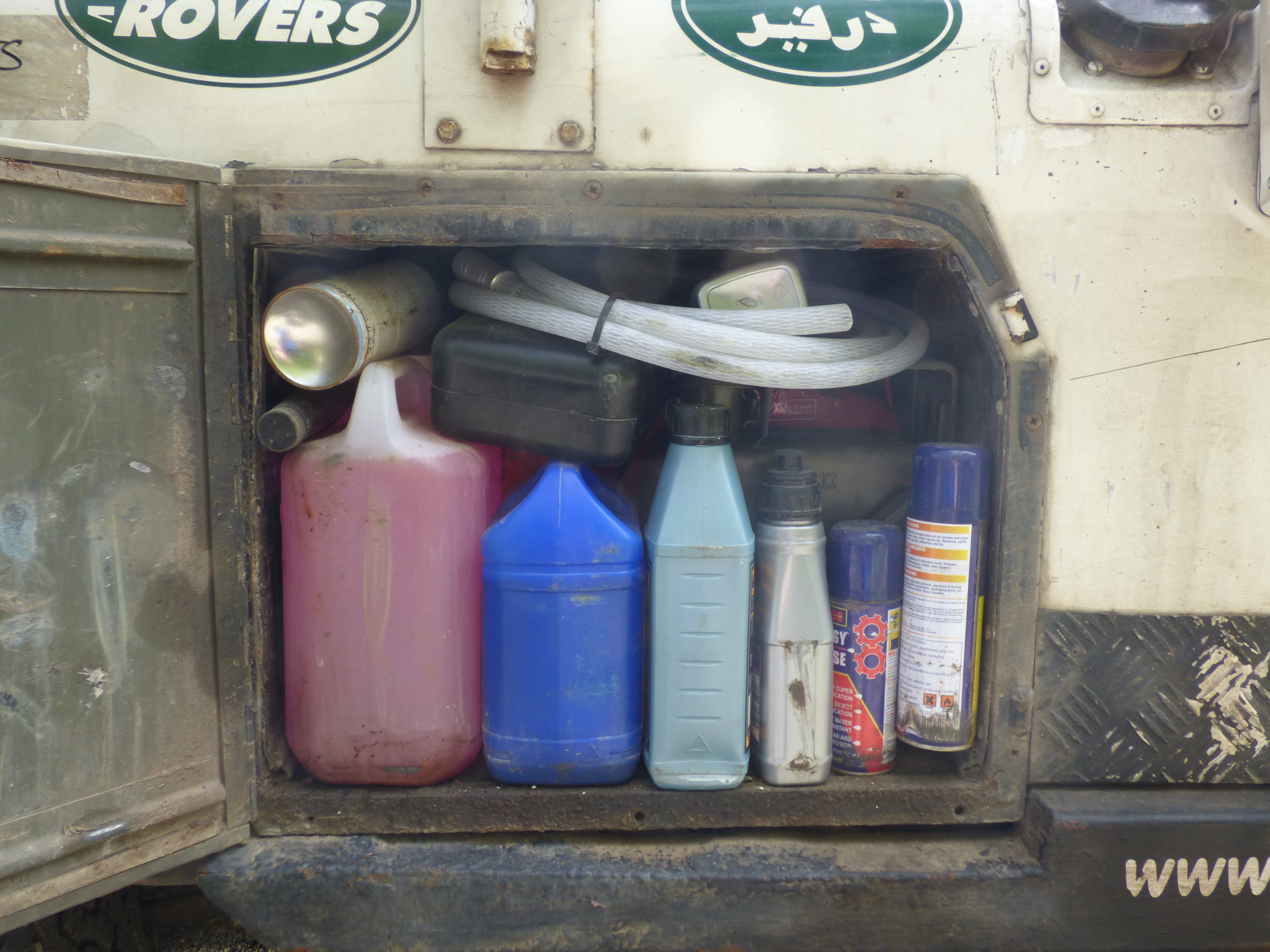 All this suggests we should have a Plan B. There are a few possible ways forward. Large internal long-range tanks are an obvious solution. If plumbed into the dead spaces in the vehicle’s bodywork (in the rear wheelarches of a Defender for example) they don’t take away any internal loadspace – but they do become additional deadweight which is unremovable when you are stuck. A litre of diesel weighs about a kilo (just under) so a 60 litre tank weighs about the same as a 17-year-old boy, especially when you include the tank itself. Jerry cans (proper military steel ones, not plastic filling-station faffery) are another possibility – you can stow them where you like in the truck, when empty they can go on the roof, out of harm’s way and clutter, and they are relatively easy to use. At 4kg each empty (the steel NATO pattern cans) they aren’t light, and some folk hate them because they ‘glug’ as they pour, and throw drops of fuel out of the nozzle. This is because air is trying to get in to replace the fuel that’s pouring out – assuming you are using a steel jerrycan with the outlet offset to the left, tilt the can ninety degrees as you pour, so the outlet is at the top – this will help it ‘breathe’ and it won’t spurt fuel everywhere. This works well if you are fuelling a Defender with the extendable mesh-filtered filler neck, but with vehicles that lack this, you might want to invest in the detachable filler spout that clips onto the outlet. Again, these only work with original NATO spec jerry cans, not the Sceptre military cans that have started to appear with the big round outlets. If you haven’t got this you can make a very good spout for filling with a jerry can with a cylindrical mineral water bottle – cut it diagonally across the body of the bottle with a sharp knife, and it makes a very acceptable filler funnel.