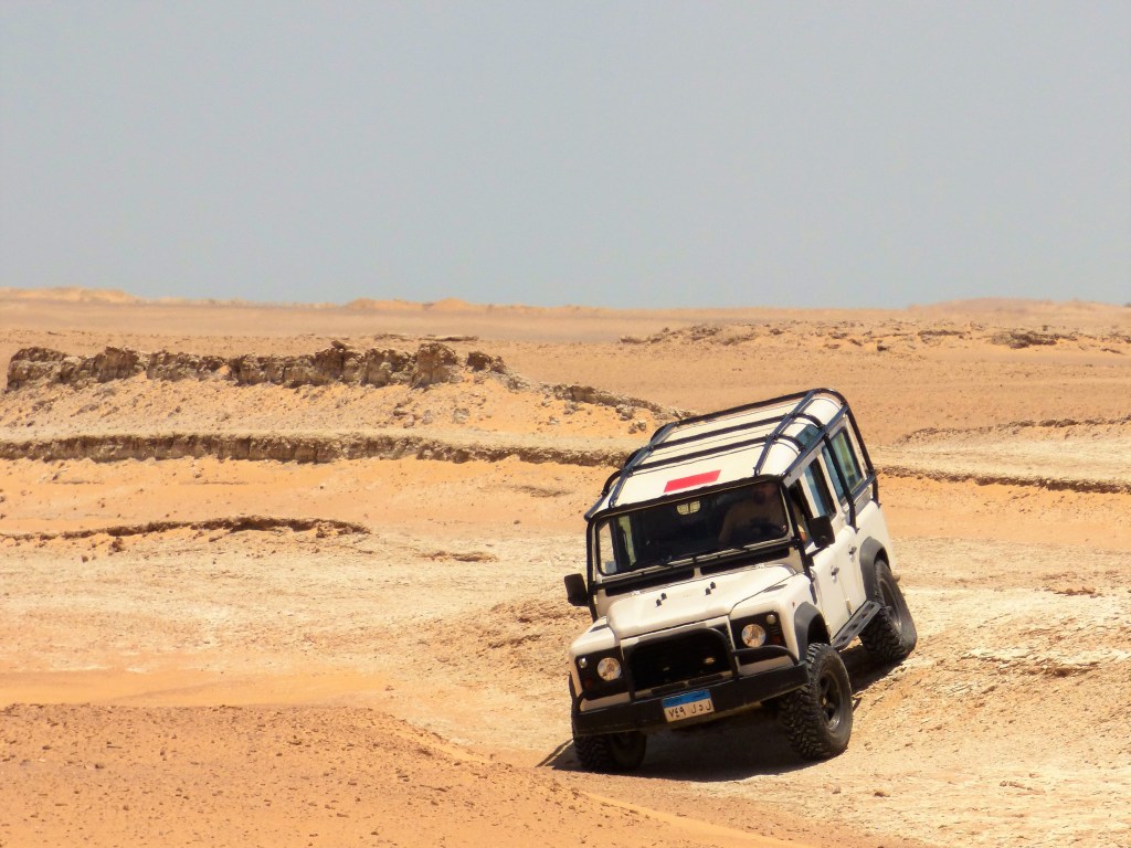 With this in mind, during the ten years I lived in Cairo, friends and I were always coming up with new locations to explore from our homes in Maadi. Recently I bought an old 1902 report describing an expedition to the desert where the explorers excavated fossils from an early mammal called Arsinoitherium. This huge creature lived in the desert when it was still grassland. The expedition went out and found it’s objective. The site was forgotten, and is still there, out in the open wilderness, giant fossils and all. A fossil of one of the first large mammals is quite something to have on your bookcase, so we gang of expat Defender owners decided to head out and find some.