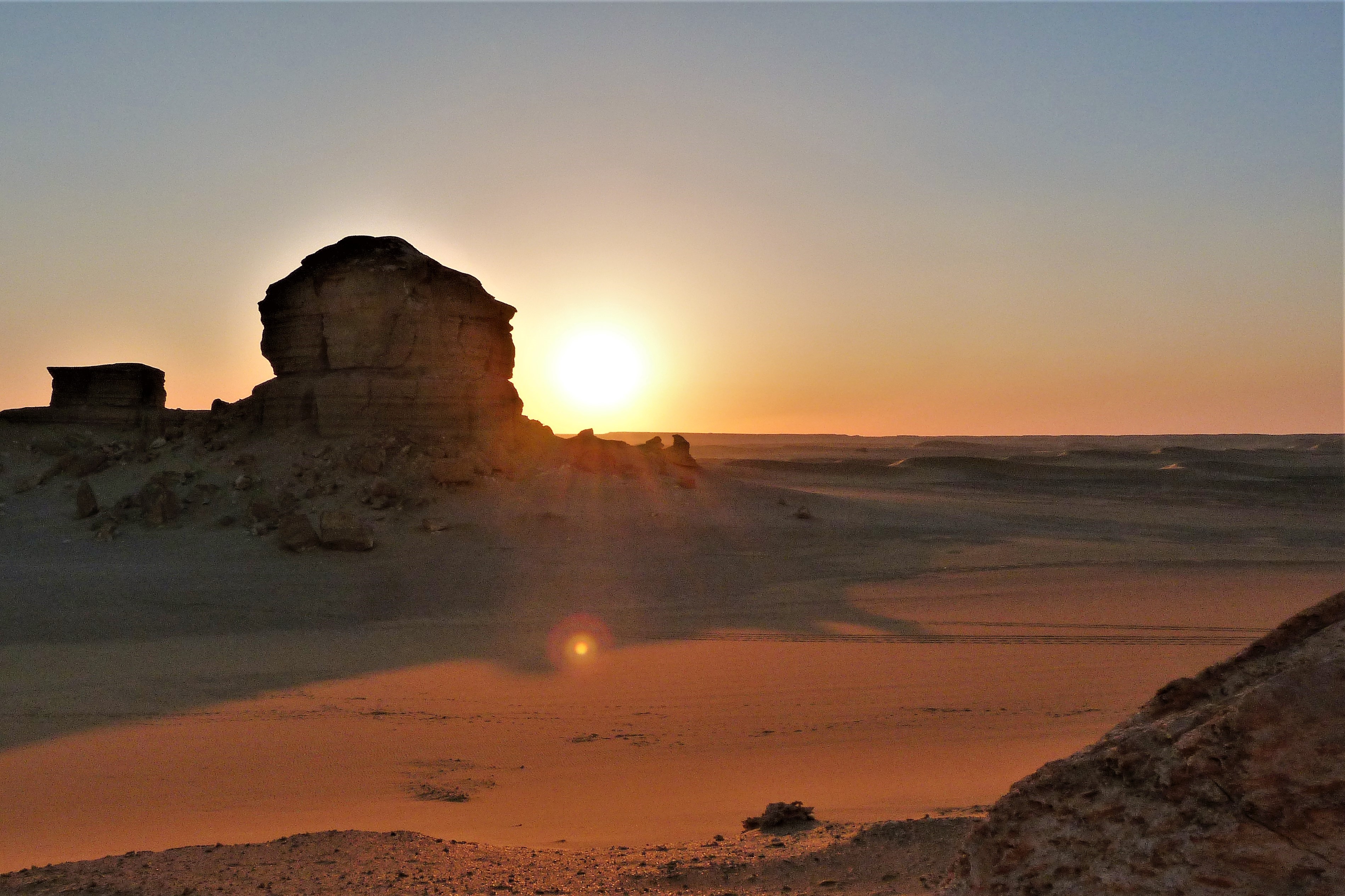 The run south through the Fayoum cultivation went smoothly and we made the first evening’s camp in the region of rock outcrops to the south. A day without tarmac is always good! Camp was a simple affair – some of the gang preferred the instant quick-pitch tents but others of us just slept on the desert floor. I prefer the latter as I can’t get enough of the stars at night in deserts, and on that occasion we were so far out from vegetation there were seldom scorpions or snakes.