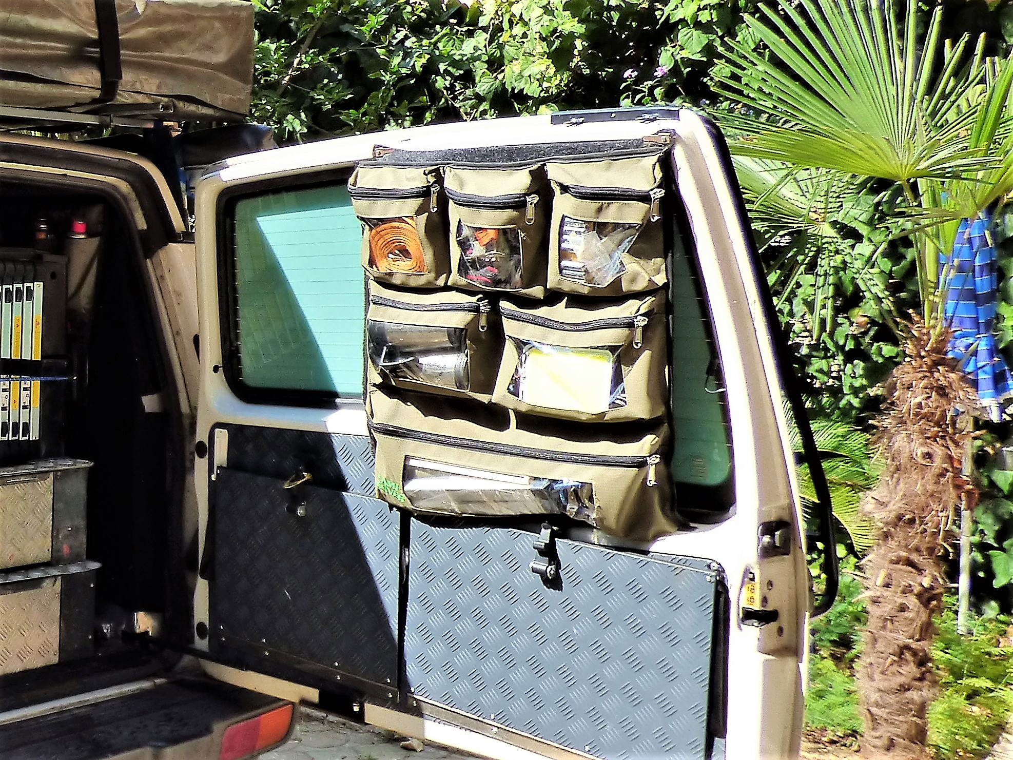 Beyond the factory-fit ergonomics, there are various things you can do to make your “office” move liveable-in. Having important kit close to hand is always a big deal, especially when rolling up to a police checkpoint or border crossing. MOLLE, the designers and makers of the modular military webbing system, make a neat retractable lanyard called a Zinger which can attach somewhere in the cab for small, useful, losable things like pens, bottle openers, multitools and so on. If you balk at the price and chunkiness of this, then an eBay search for “retractable lanyard” will turn up other options. Some overlanders keep the loo roll on the gear lever in a Defender, secured with an elastic band – though that’s not for everyone! Camp Cover make a neat pocket unit that sits atop the transmission tunnel and is easy-access storage for small items. Headtorches can be stored on the seat headrest, though looping them around the headrest will over-stretch the elastic over time. Better to loosely knot them round the headrest support or seat-side grab-handle on a Discovery.