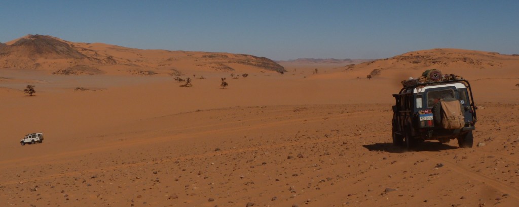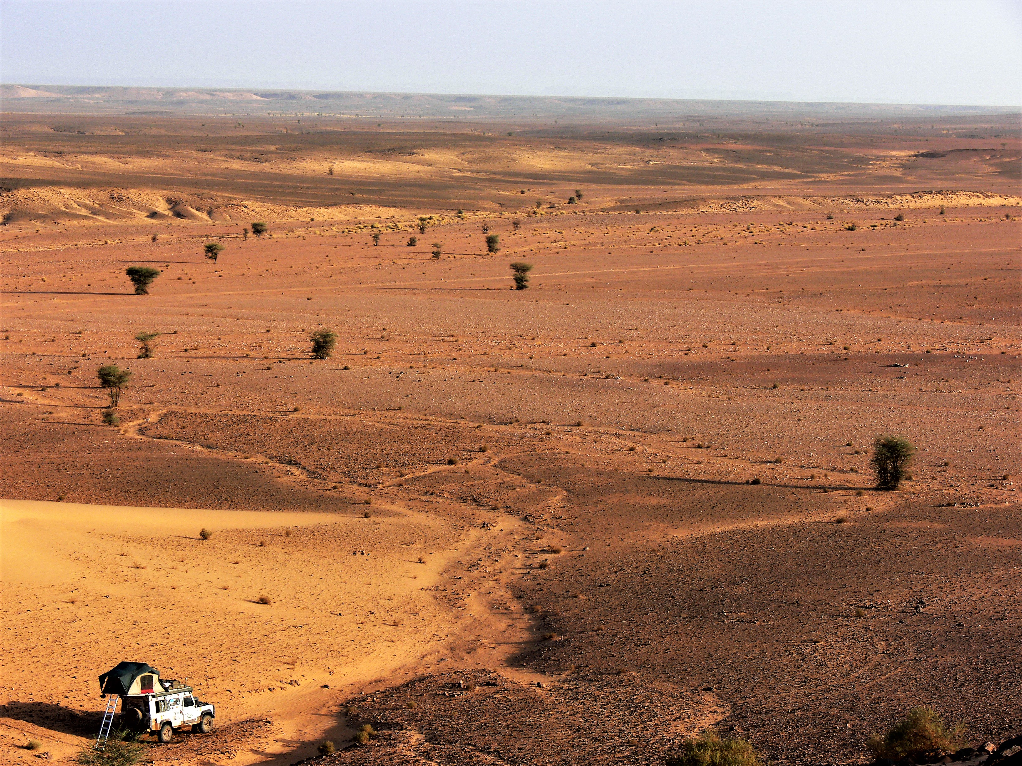 After yesterday’s discussion about how to scout and set up a camp in an arid rocky valley, it might be worth extending the view and talking about actual desert camps. Typically an overlander’s first experience of a desert camp might be Morocco or Tunisia and, though the “real” desert is fast vanishing from those places, there’s still enough wild space to give a taste of what “deep desert” camping is like.