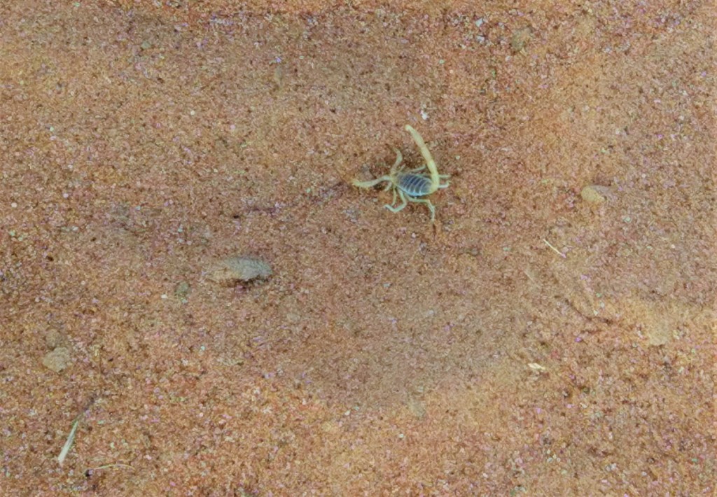 Maybe you don’t fancy a tent. I can’t blame you. I seldom use a tent in the open desert, preferring to put a bedroll straight onto the desert sand. The stars at night are jaw-droppingly beautiful. Be aware however of crawling inhabitants – if you’re near vegetation or rocks you’d be safer to use a camp bed out in the open – scorpions and snakes like snuggling up to human warmth at night, and they live near oases and patches of shade. Bung up the top of your boots, when taken off, with rolled-up socks, so nothing can get in. Talking of shade and snakes, avoid walking barefoot under trees. Scorpions and snakes love to shelter there. Their camouflage is formidable, as is their venom when trodden on. They also like hiding in piles of firewood left over from the night before. Don’t leave food around unprotected in camp – bugs will find it and have a midnight feast – and so might desert rats and foxes.