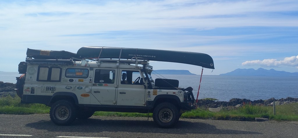 My own linking of Land Rovers and canoes has mainly been with Canadians – of the various models, the Old Town Discovery 169 is a perfect fit for exploring rivers, lakes and lochs in the UK and further afield. At seventeen feet long it seats three easily with kit, but it’s a big old beast, and needs fastening securely to the roof rack or roof bars of your vehicle. Getting it up there can be a chore, especially on your own, and roof racks with rollers on the rear (as used for carrying ladders) can make life easier. It’s perfectly possible to lash a canoe onto the roof on top of a roof tent – you might need to protect them from each other with some pieces of packing foam. Sea kayaks are another popular option for 4×4 owners; they allow access to the myriad of small islands off the west coast of Scotland, for example. One of the most amazing experiences of my life was camping with my Defender near Applecross in the Highlands and taking a sea kayak out into the Inner Sound, the stretch of sea between the islands of Raasay and the mainland. I was paddling along when I was overtaken by a six-foot tall black fin atop a creature the size of a bus…. an orca, only a few feet from my (suddenly very small) sea kayak. The huge mammal rolled onto his side to look at me, and I looked into a melon-sized eye which looked back at me, right into my own eyes– a humbling experience. Sea kayaks aren’t for everyone though, and for family holidays or exploring lakes and rivers a Canadian canoe is probably the most common choice.