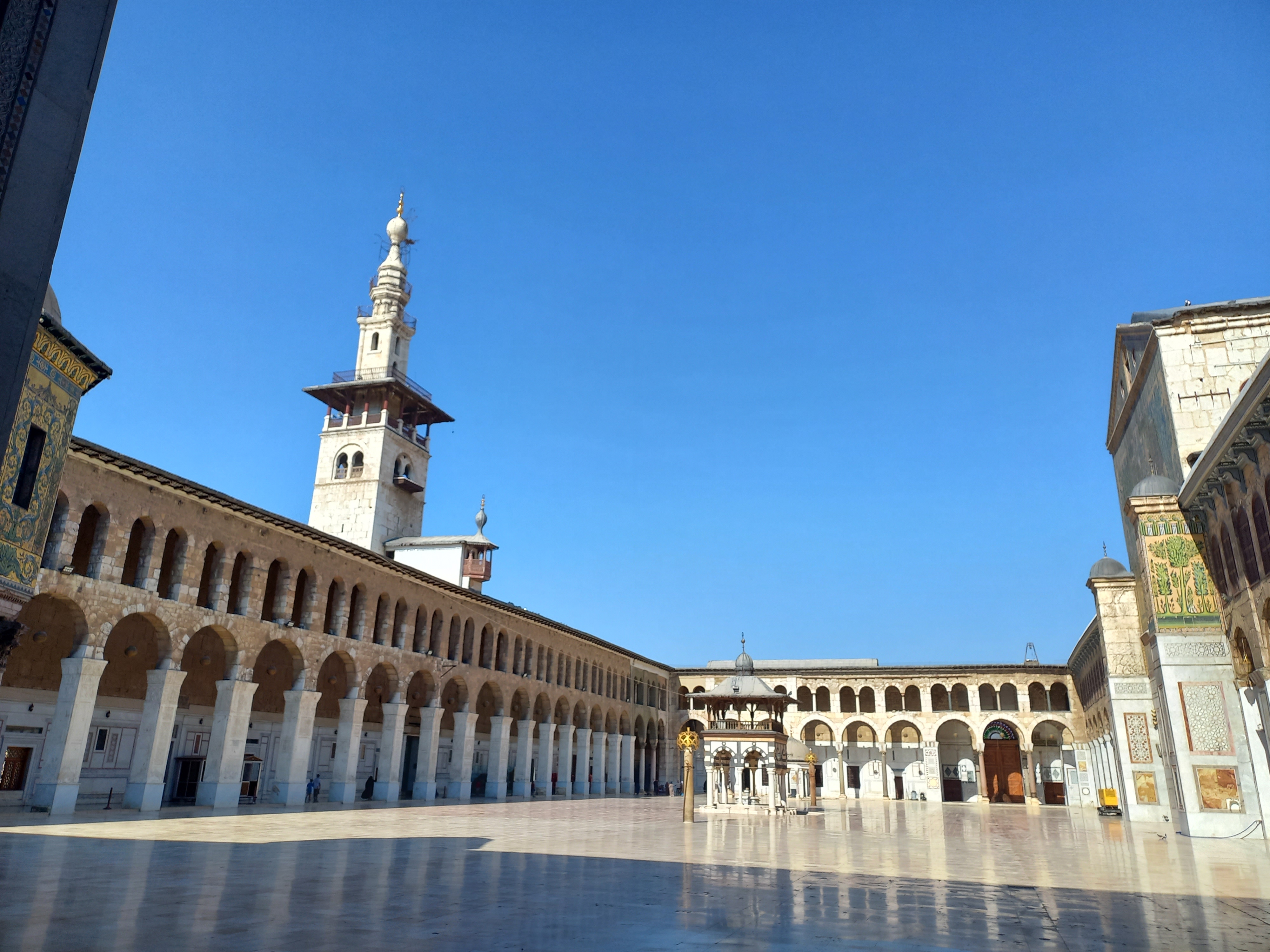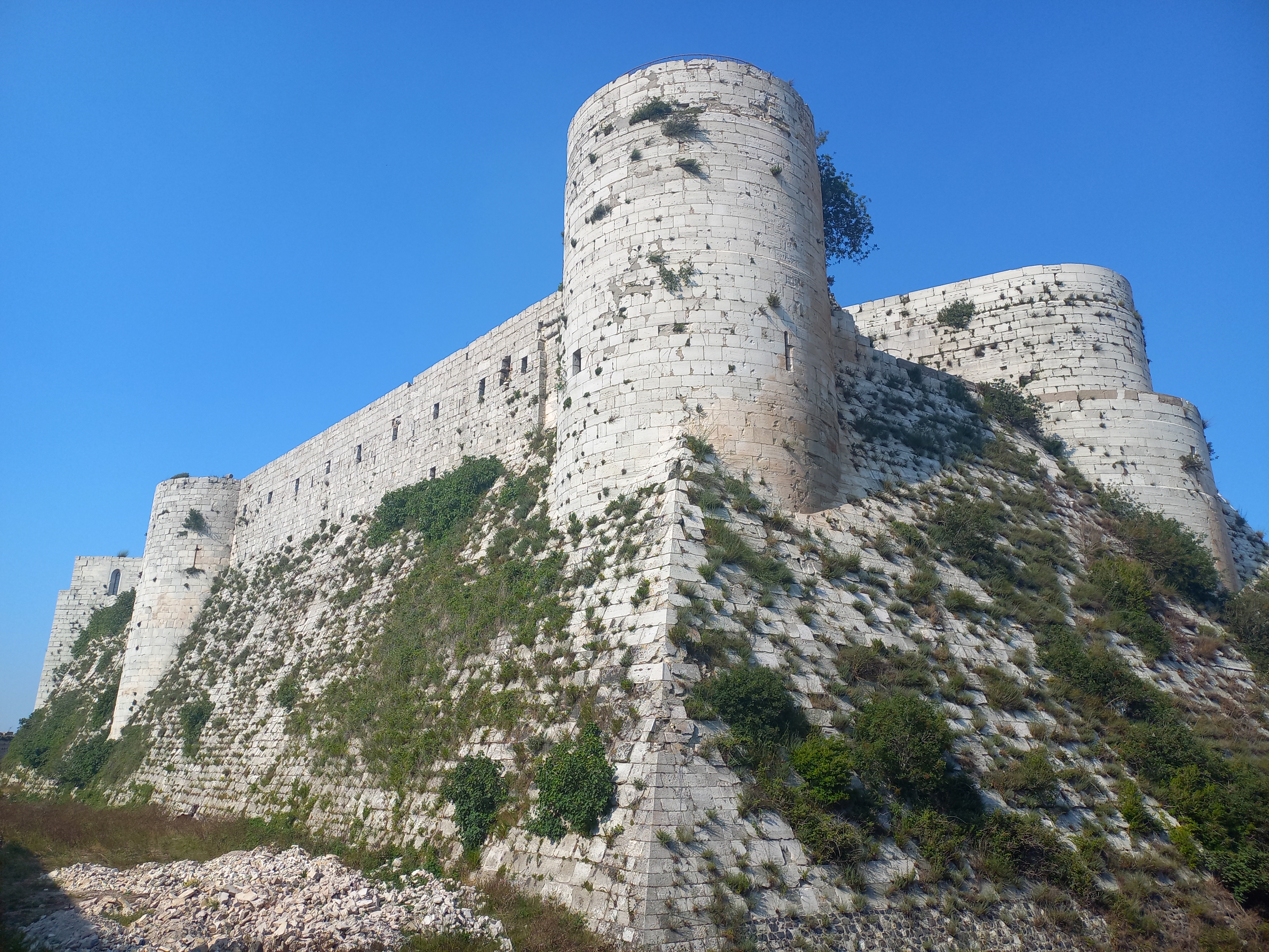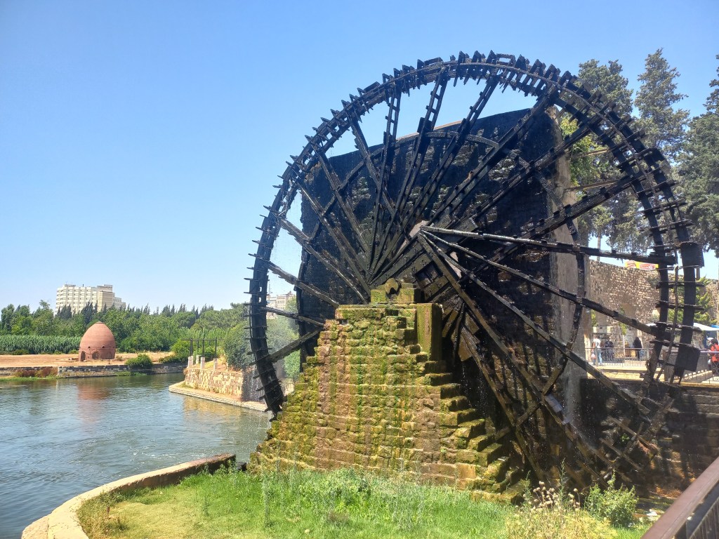 The Umayyad Grand Mosque, DamascusThe inner fortress of Krak Des ChevaliersThe Citadel, AleppoThe desert south of Damascus. Golan Heights on the horizon to the right.One of the giant noria – water wheels – on the Orontes River in the city of Hama Water resupply at a Roman irrigation canal